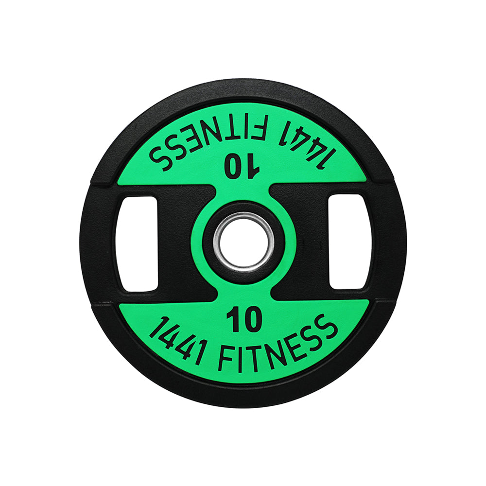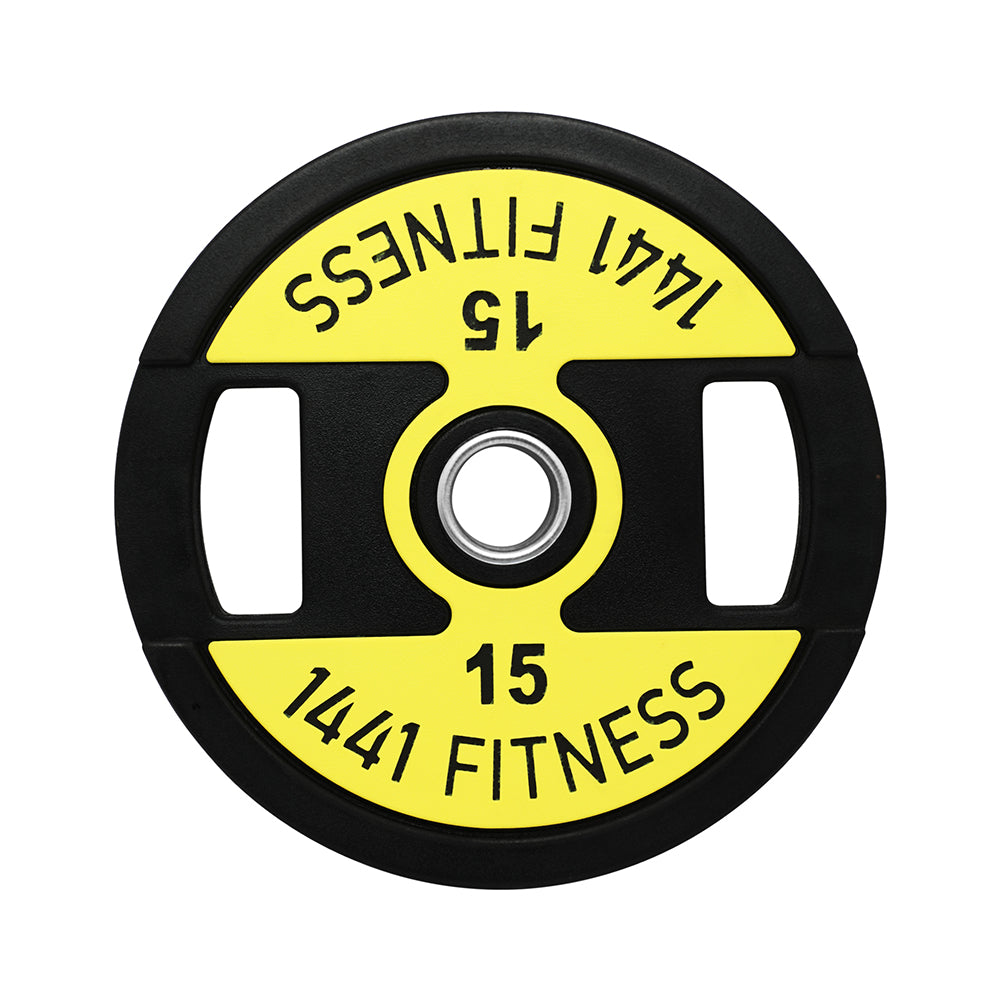 1441 Fitness dual grip olympic weight plate with PU coating is easy to lift and protect the disc and floors from cracking. Workout has never been so easier with the Tri-Grip Olympic PU rubber Weight Plate available at Prosportsae. It reduces disc noise and resists rusting. The grip plate is specially designed with a tri-grip handle that offers a firm hold while doing exercises and also makes the lifting or loading on the bars easy. The gym weight plate is good for strength training, weight lifting, squats, chest exercises, and more to complement your strength training .