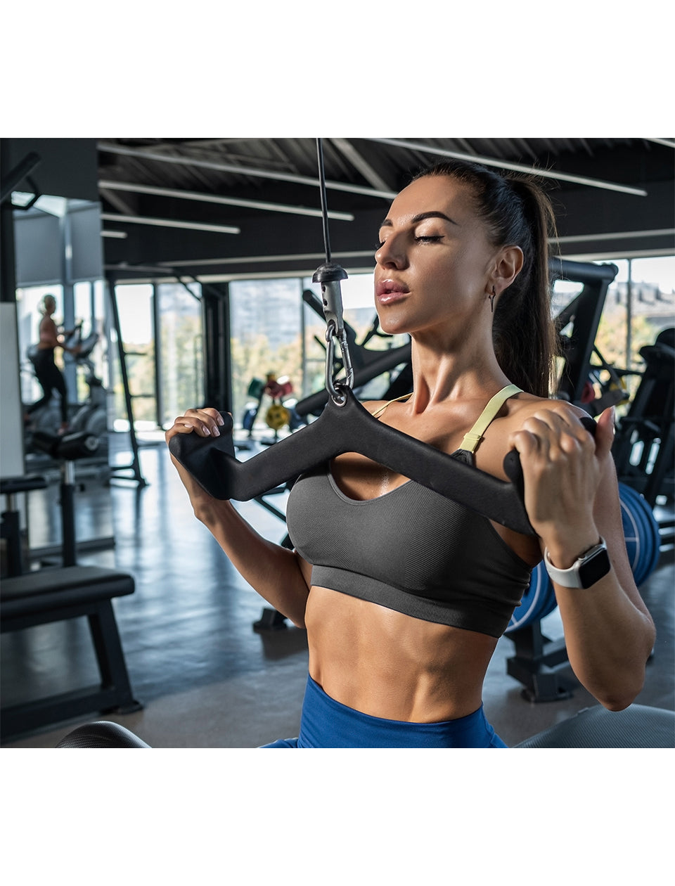 - Multiple, varying grip positions to isolate different parts of back and lat muscles