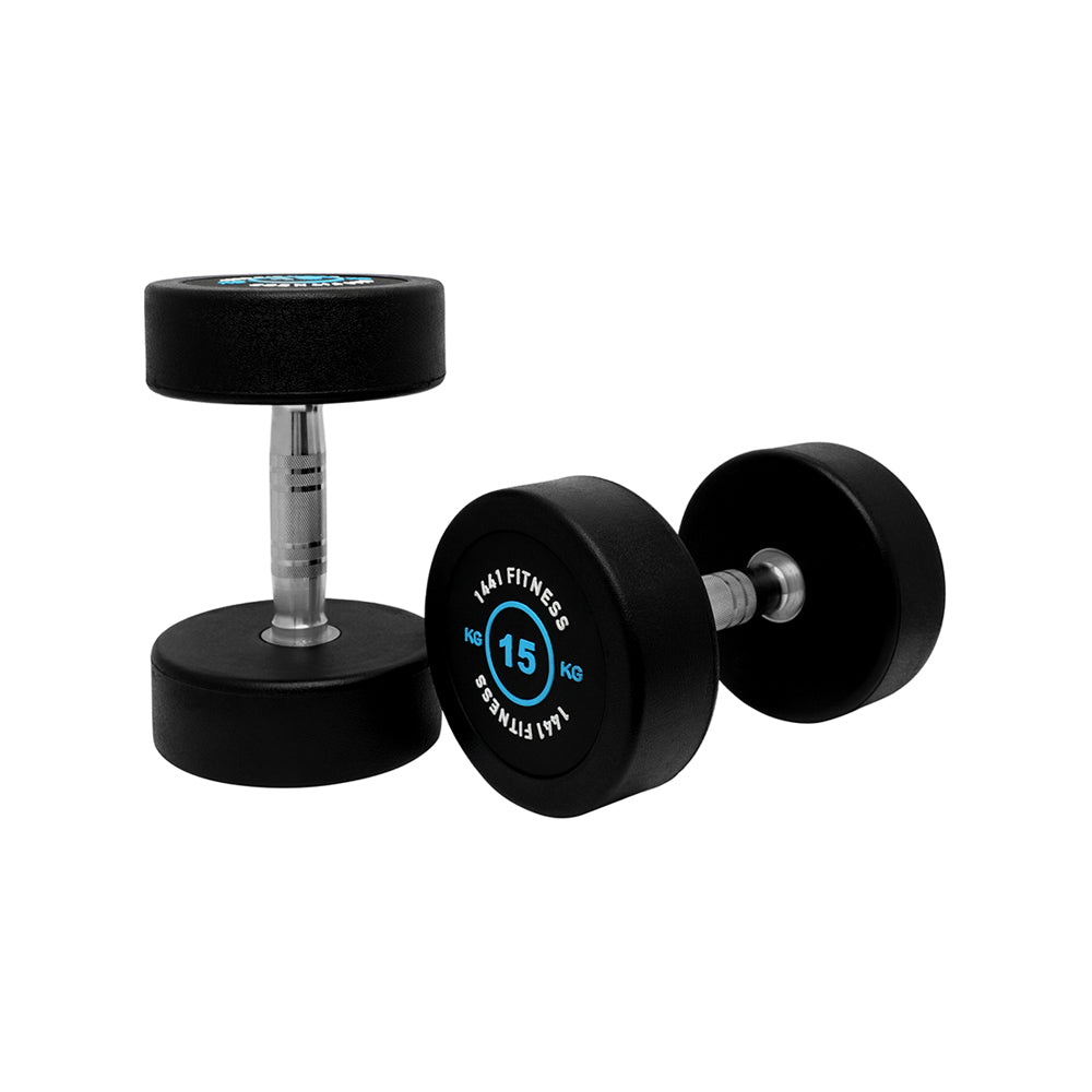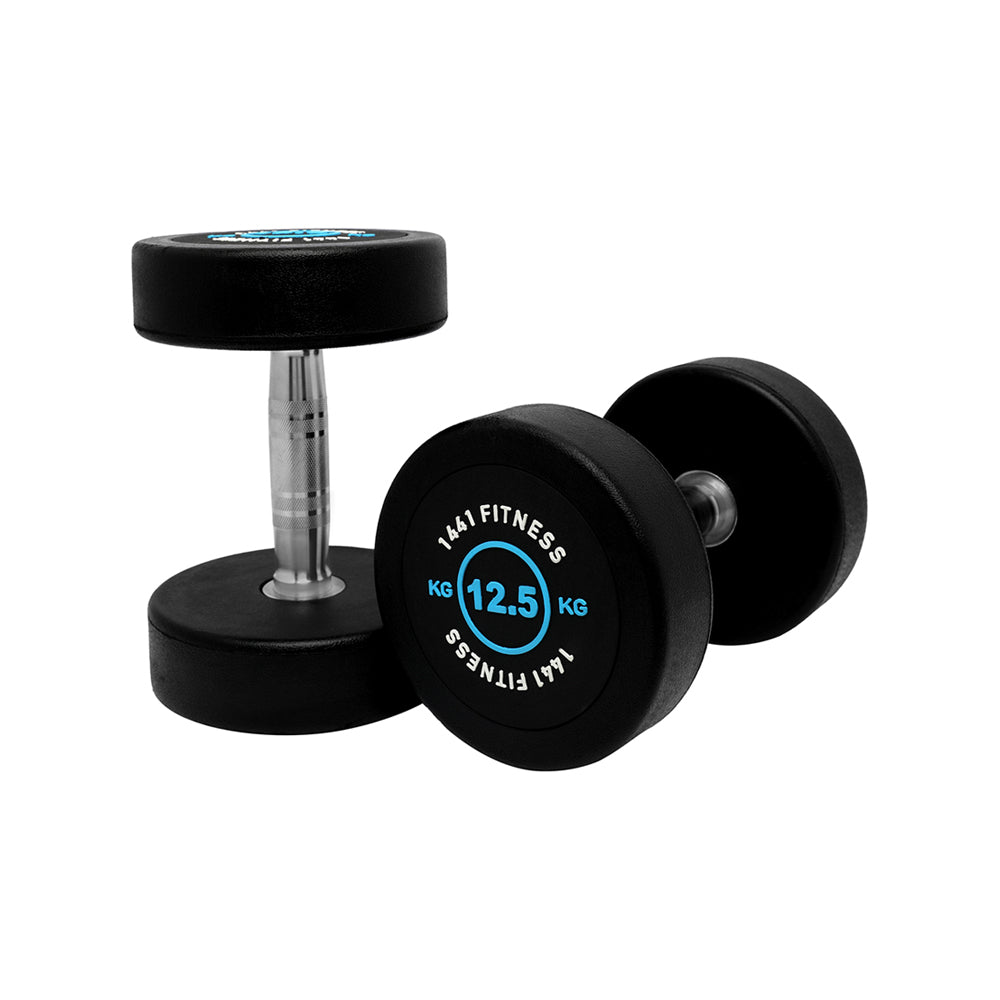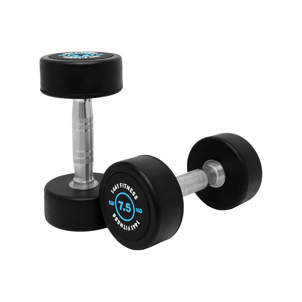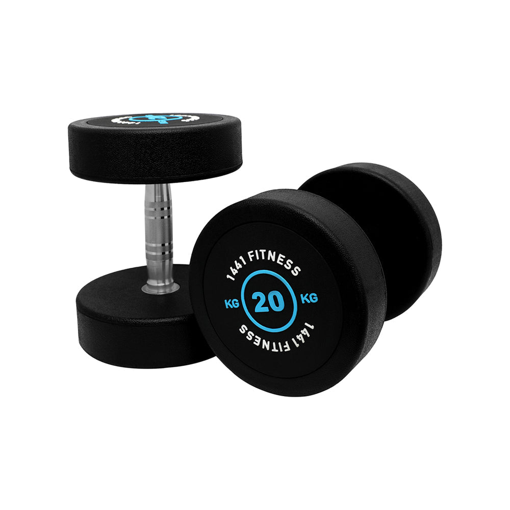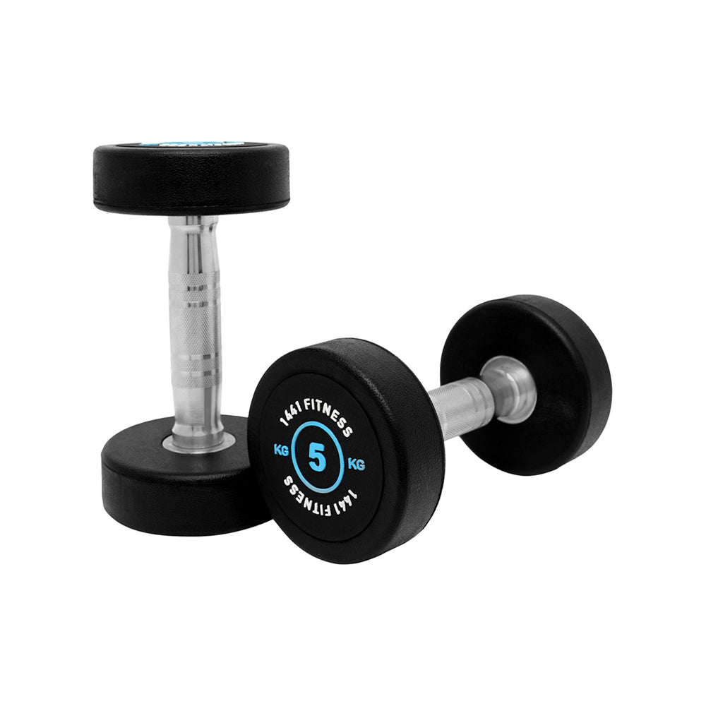 1441 Fitness Premium Rubber Round Dumbbells 2.5 to 50 kg - Blue (Sold as Pair)