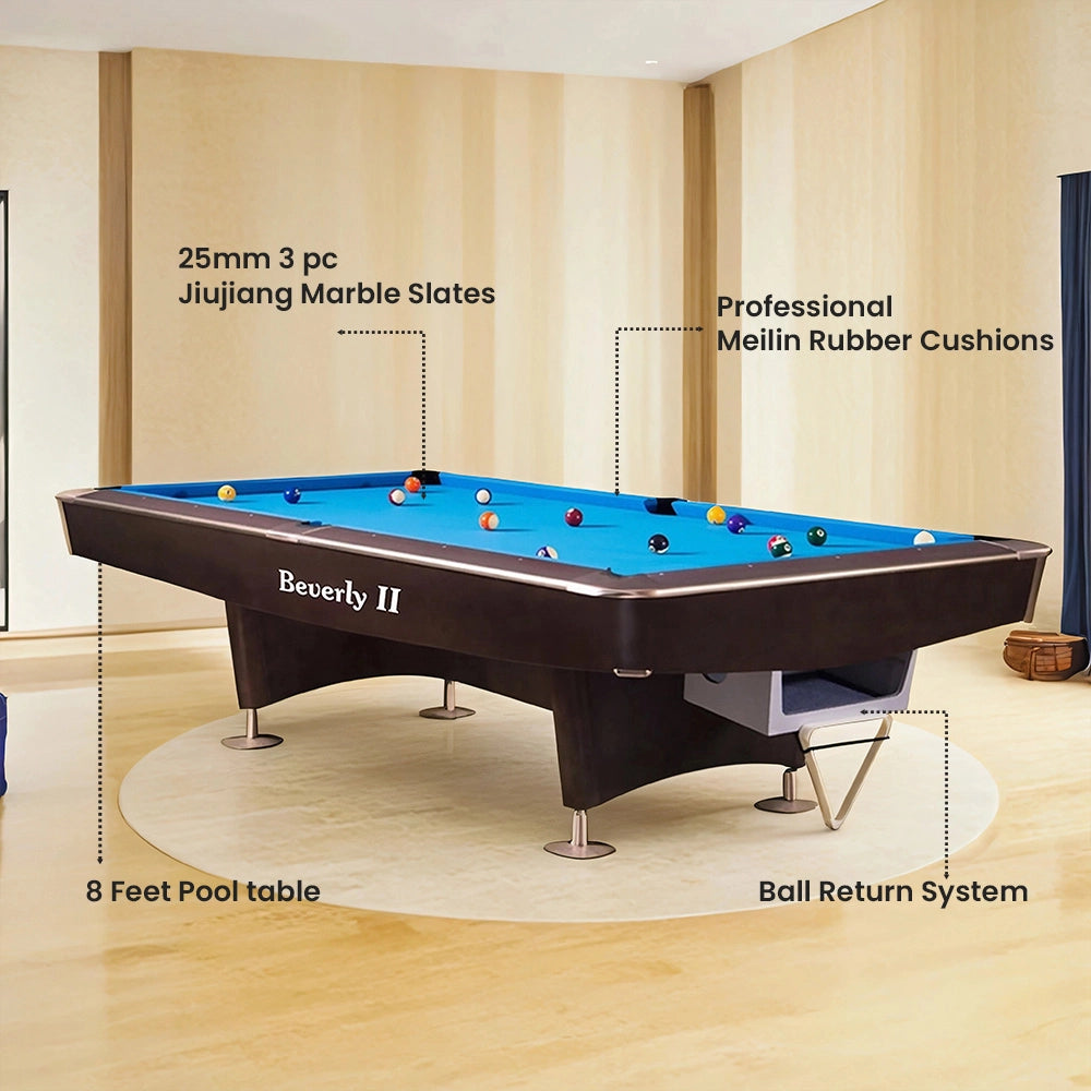 Beverly II Pool Billiard Table 4th Gen 8 Feet Marble Top With Ball Return System Brown