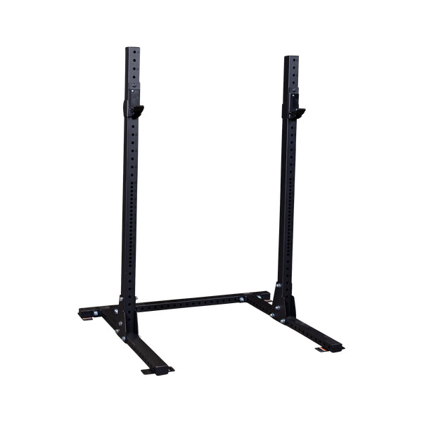 The SPR250 Squat Stand by Body-Solid is a full commercial rated compact squat stand that allows the exerciser to perform squats, deadlifts, power cleans, rack pulls, bench presses, overhead presses, and other barbell exercises.