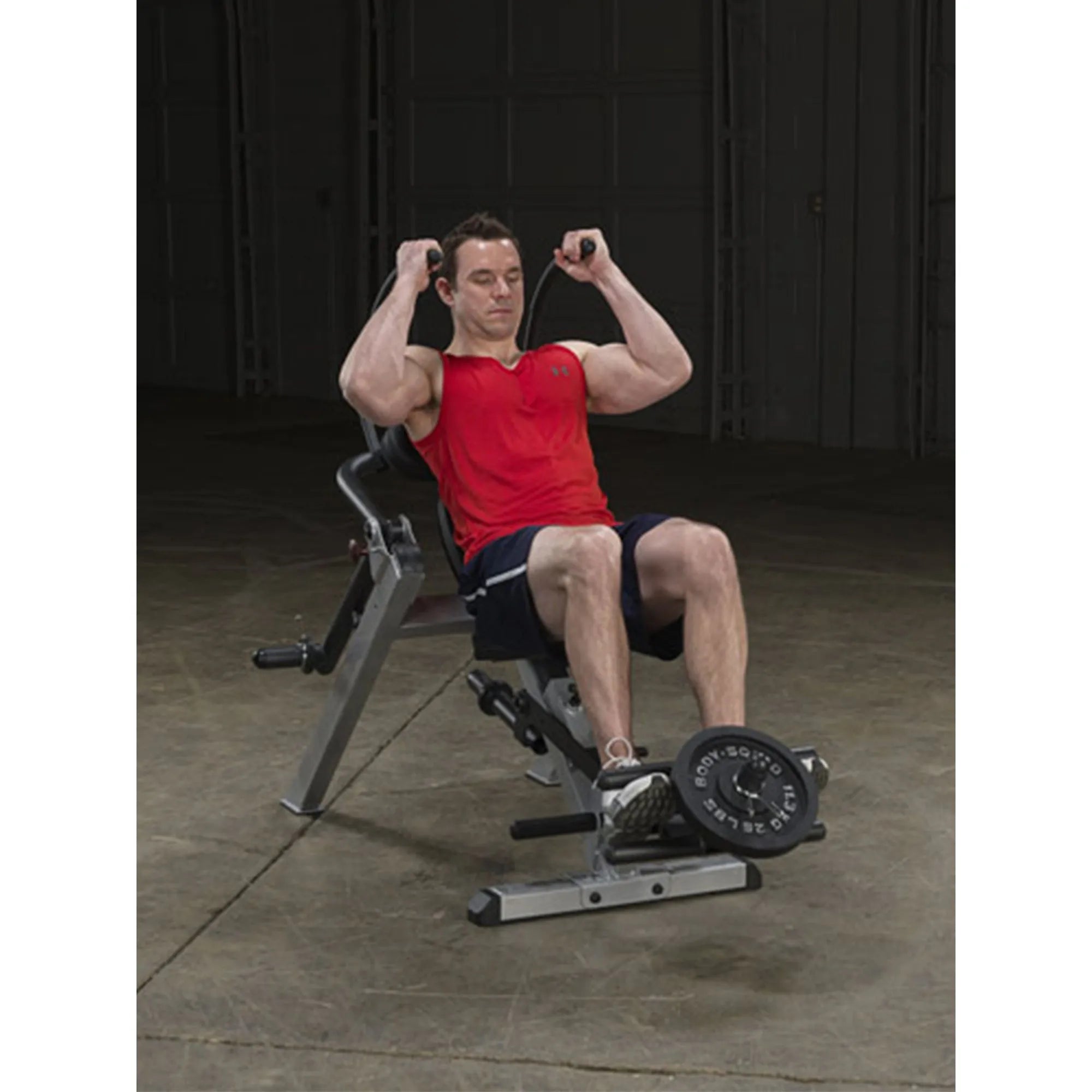 The Body-Solid GAB300 Semi-Recumbent Ab Bench revolutionizes abdominal workouts by providing a targeted and controlled approach to building substantial core strength. This bench allows users to isolate different regions of the abdominal muscles, offering a versatile platform for performing ab crunches and knee raises either independently or in tandem. Designed with both beginners and advanced users in mind, the GAB300 adapts to varying fitness levels. Beginners benefit from the counterbalance option, ensuring a controlled exercise movement. As users progress, the bench accommodates increased resistance through the addition of weights, facilitating a challenging workout to enhance endurance and strength. Ideal for those serious about achieving well-defined six-pack abs and obliques, the GAB300 Semi-Recumbent Ab Bench reflects Body-Solid's commitment to quality and innovation in home and commercial strength training equipment. With Olympic-style plate compatibility, it provides a comprehensive solution for individuals seeking effective and efficient abdominal workouts.