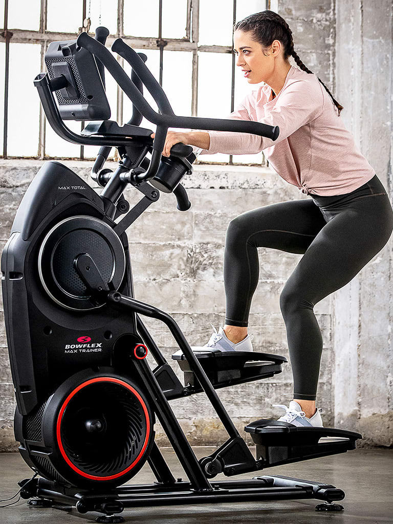 The Bowflex Max Total—a top quality crosses between a stair stepper and an elliptical. It comes with a built-in HD touchscreen display, 20 resistance level, sleek design, Bluetooth-compatible sound bar , new additional hand grips for improved ergonomics and Bowflex AI-based training capability. It is quite effective in providing efficient high-intensity cardio workouts, and with Bowflex JRNY.it provides a range of training options according to your needs. Running in a very Siri/Alexa sort of function; ‘Max’ is Bow flex’s virtual coach, Basic functionality with ‘Max’ is available with the free version of the JRNY app, however a paid monthly subscription opens up a slew of additional customized workouts. The machine is quite compact, that means you’ll burn up less floor space in your home gym while you burn those calories. These machines are always preferred by the people who is suffering from or recovering from past strains or injuries to their knees/hips/etc.