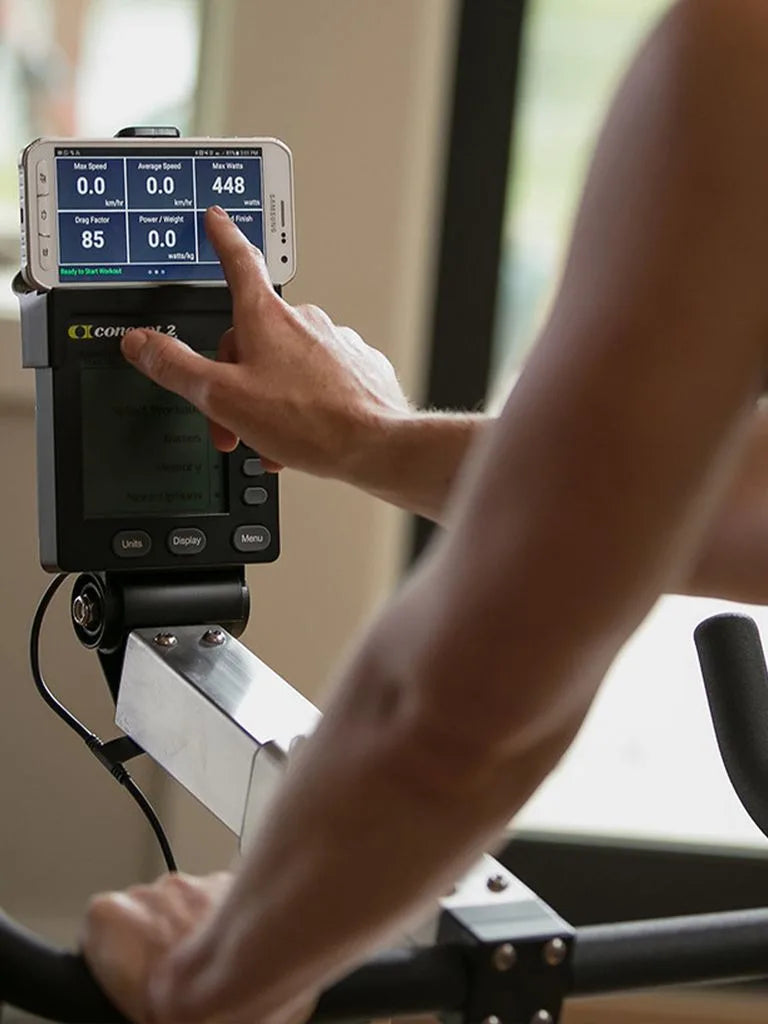 Several apps can be connected to the PM5 Monitor via Bluetooth, including ErgData and third-party apps like Zwift. Small smartphones and large tablets of all sizes can be held in the device holder, which is quickly and simply adjustable. The Performance Monitor can be placed at the end of the handlebar rail by removing the device holder.