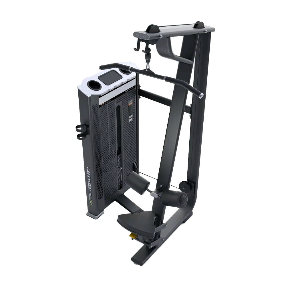 The Prestige Pro Series Lat Pulldown follows the usual design style of this category, with the pulley position on the device allowing the user to move smoothly in front of the head. The Prestige Pro Series powered gas assist seat and adjustable thigh pads make it easier for exercisers to use and adjust.