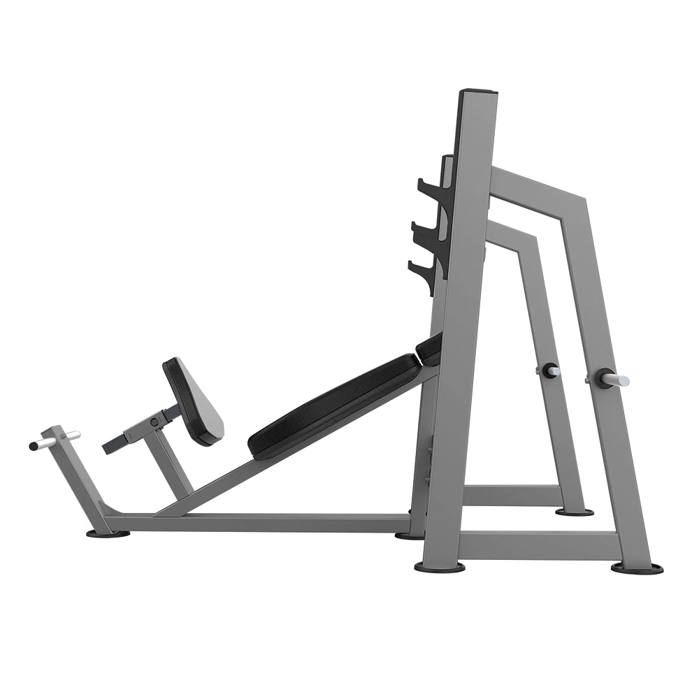 Olympic Incline Bench is designed to provide safer and more comfortable incline press training. The fixed seatback angle helps the user to position correctly. Adjustable seat accommodates users of different sizes. The open design makes it easy to enter and exit the equipment, while the stable triangular posture makes training more efficient.
