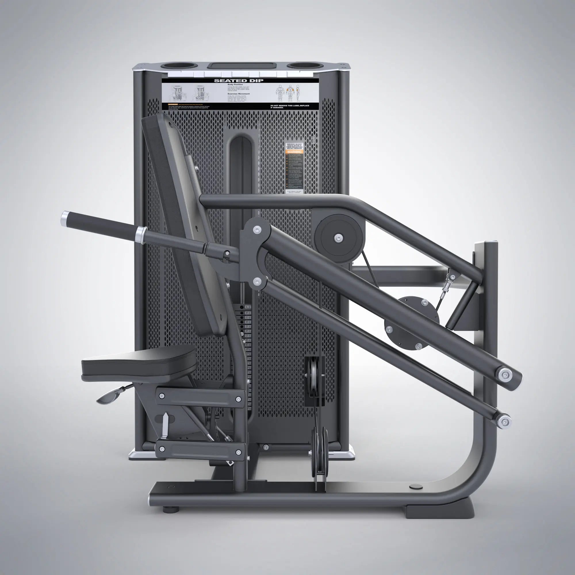 E7026 - The Prestige Pro Series The Prestige Pro Series Seated Dip replicates the motion path of the traditional parallel bar push-up exercise, providing a comfortable and effective way to train the triceps and pecs. The angled back pad reduces pressure while improving stability and comfort.