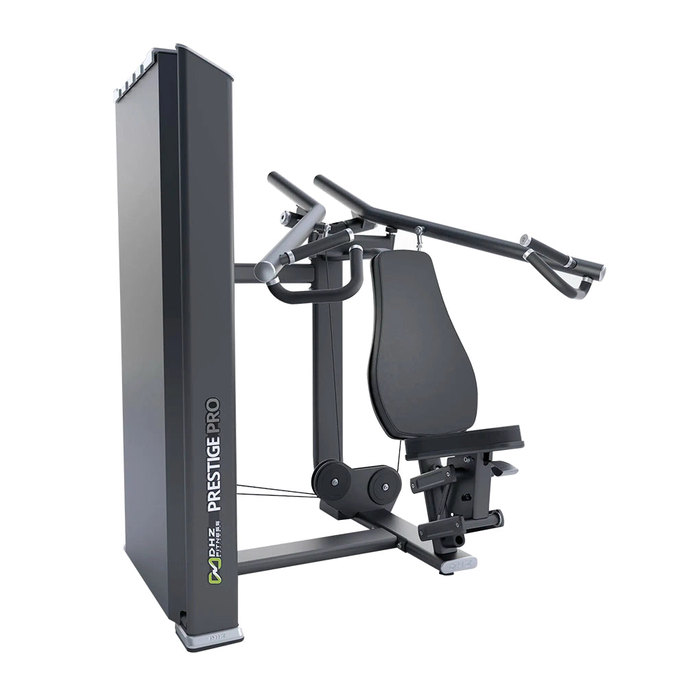 The Prestige Pro Series Shoulder Press offers a new motion trajectory solution that simulates natural motion paths. The dual-position handle supports more training styles, and the angled back and seat pads help users maintain a better training position and provide corresponding support.