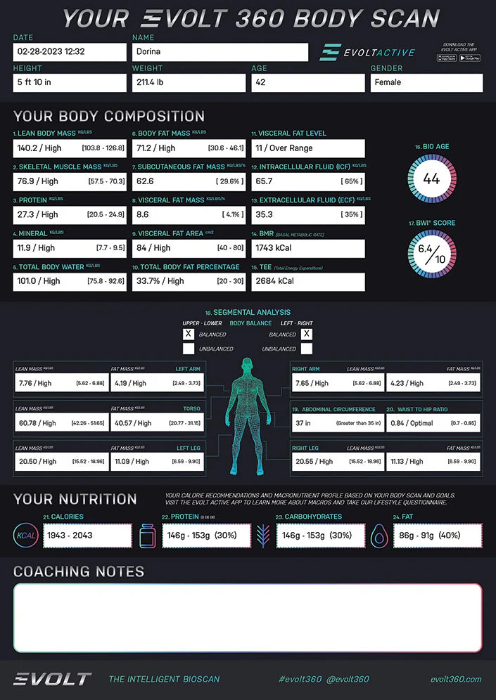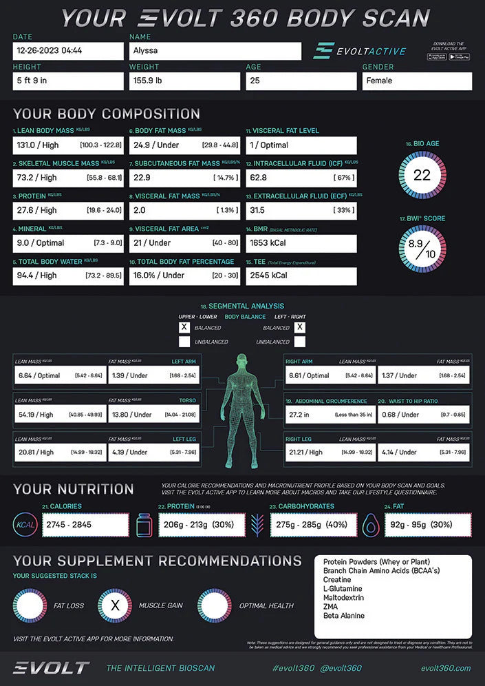 Using Bioelectrical Impedance Analysis (BIA) technology, the Evolt 360 dives deep into your body, measuring over 40 key metrics. Think of it like a VIP pass to your inner workings, revealing: