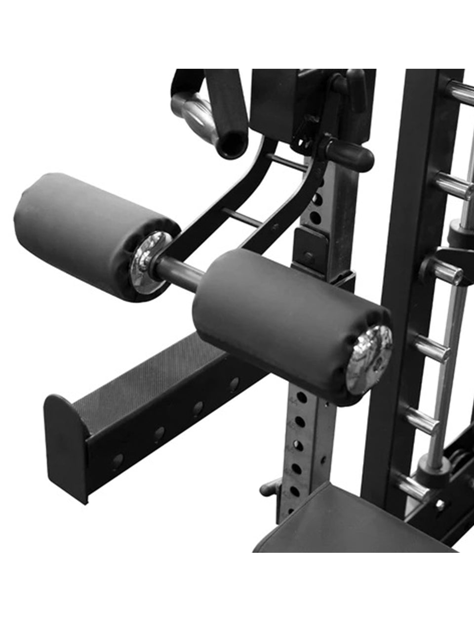 With the oversized vertical leg press plate attachment, this all-in-one trainer will have you looking forward to your next leg day. Designed with a slip prevention surface and a black powder-coated finish, the leg press attachment makes use of the smith machine's 14 starting heights and built-in safety stoppers for a safe workout.