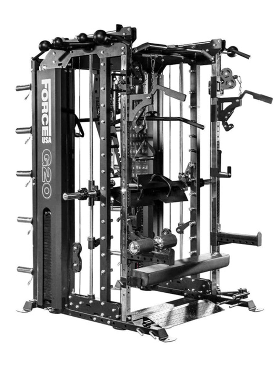 Whether you're looking to maximize your work out space, or looking to take your training to the next level, the Force USA G20 All-In-One Trainer is your ultimate work out partner. Boasting the largest number of included attachments ever released with a Force USA all-in-one trainer, the G20 is your commercial-grade functional trainer, smith machine, power rack and leg press, all rolled into one.