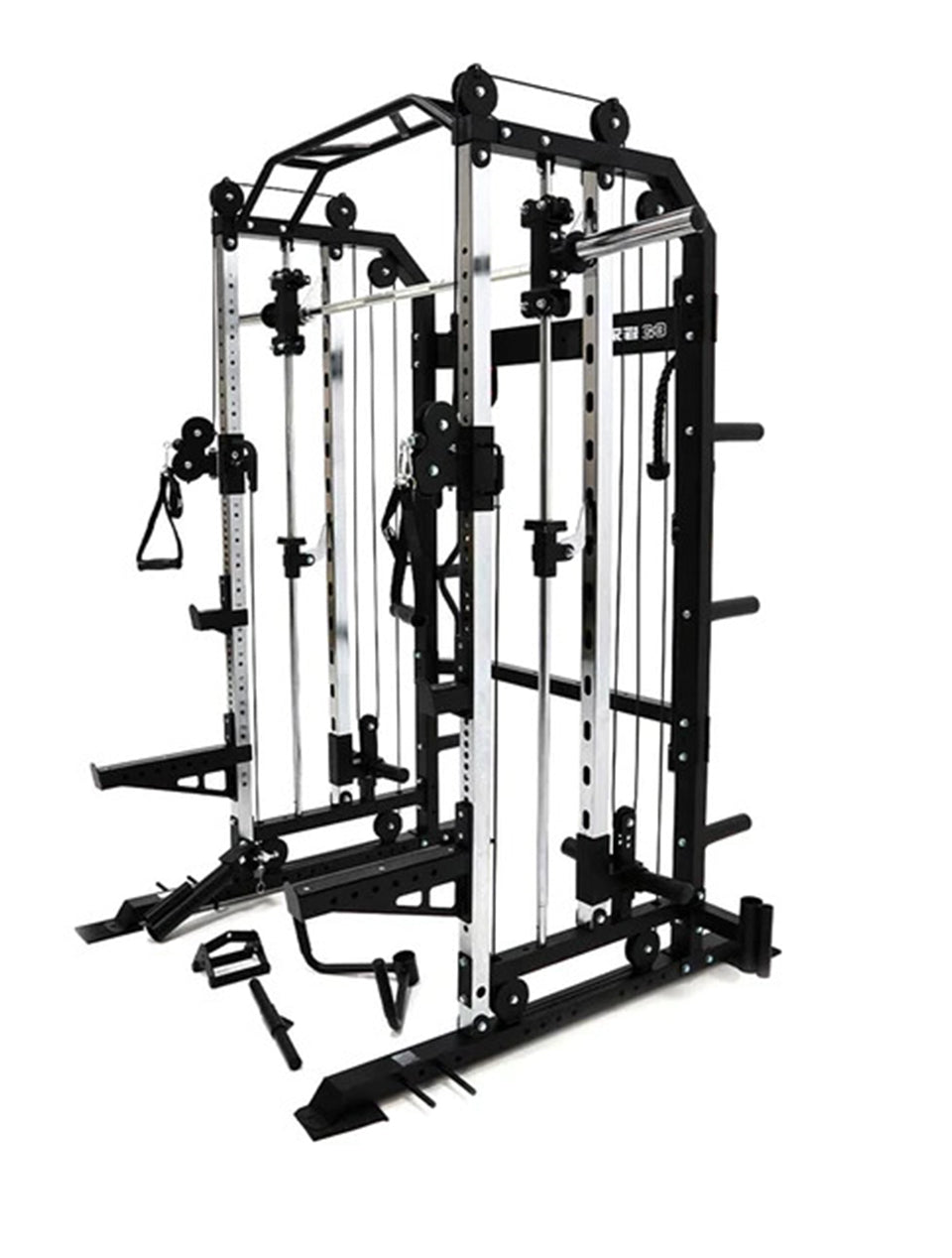 Its Five Machines in One! Our customers said they wanted an all-in-one machine that combined all of the benefits of a Power Rack, Functional Trainer, Smith Machine, Chin Up Bar, and Core Trainer.