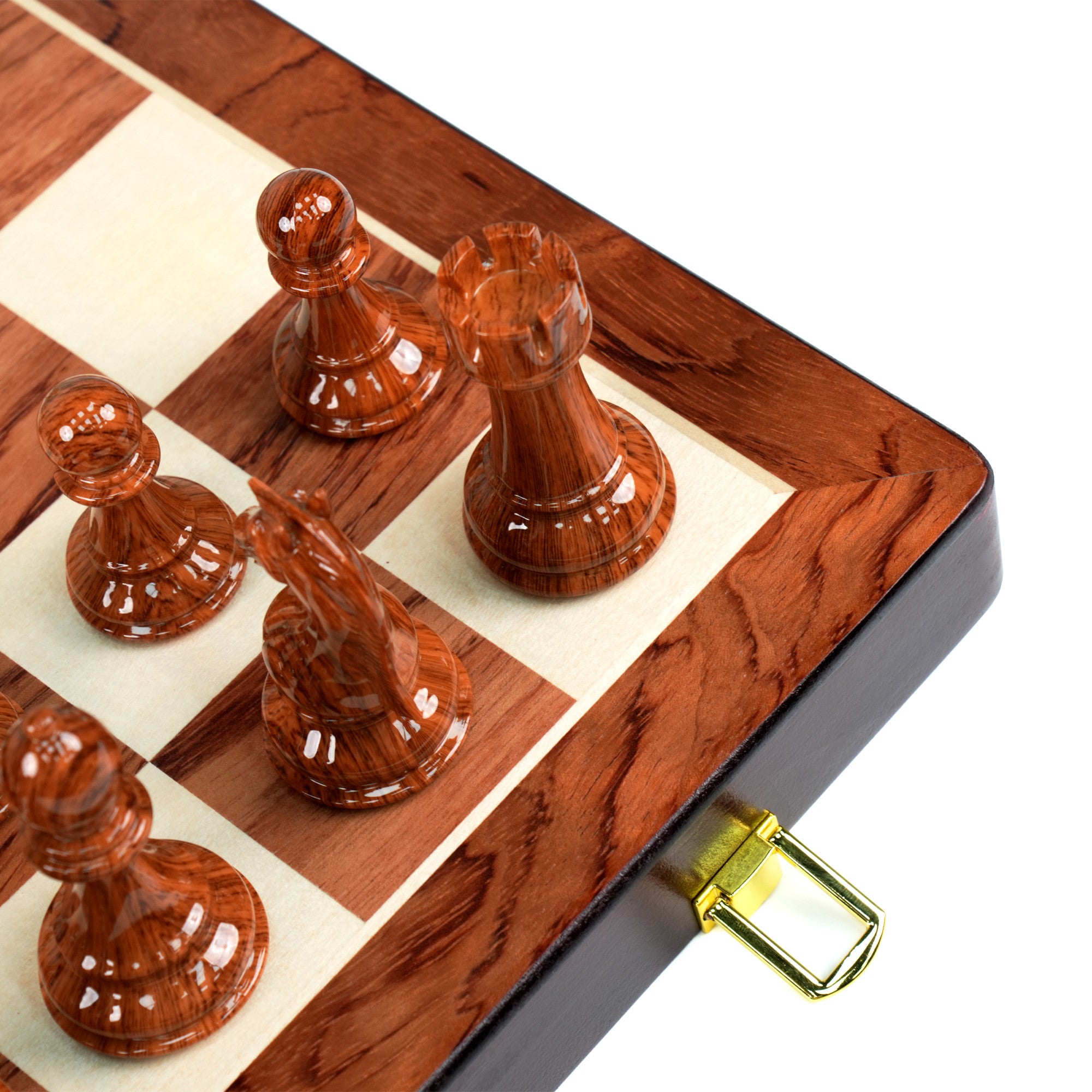 - The polished finish with vivid wood grain in light and dark colors look very natural, making these chess pieces an ideal match to all kinds of chess boards