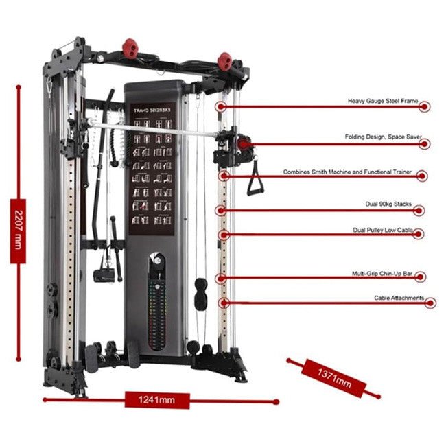 - Combines Smith Machine and Functional Trainer - This unit integrates a Smith machine with a fully adjustable functional trainer, providing a comprehensive workout experience in one machine.