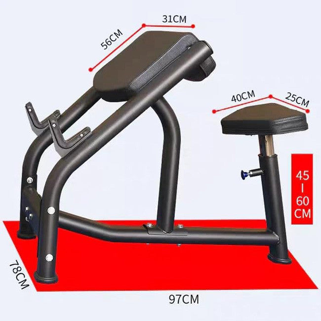 Introducing Harley Fitness Preacher Curl Bench, the ultimate addition to your arm training routine. Made from heavy-duty steel and finished with a durable powder coating, this bench is designed to support preacher curls, and can be used with specialty bars such as EZ Curl bars, or dumbbells to strengthen the biceps. The bench features an adjustable seat and fixed position arm pad that allows for a comfortable and secure workout. Its sturdy construction