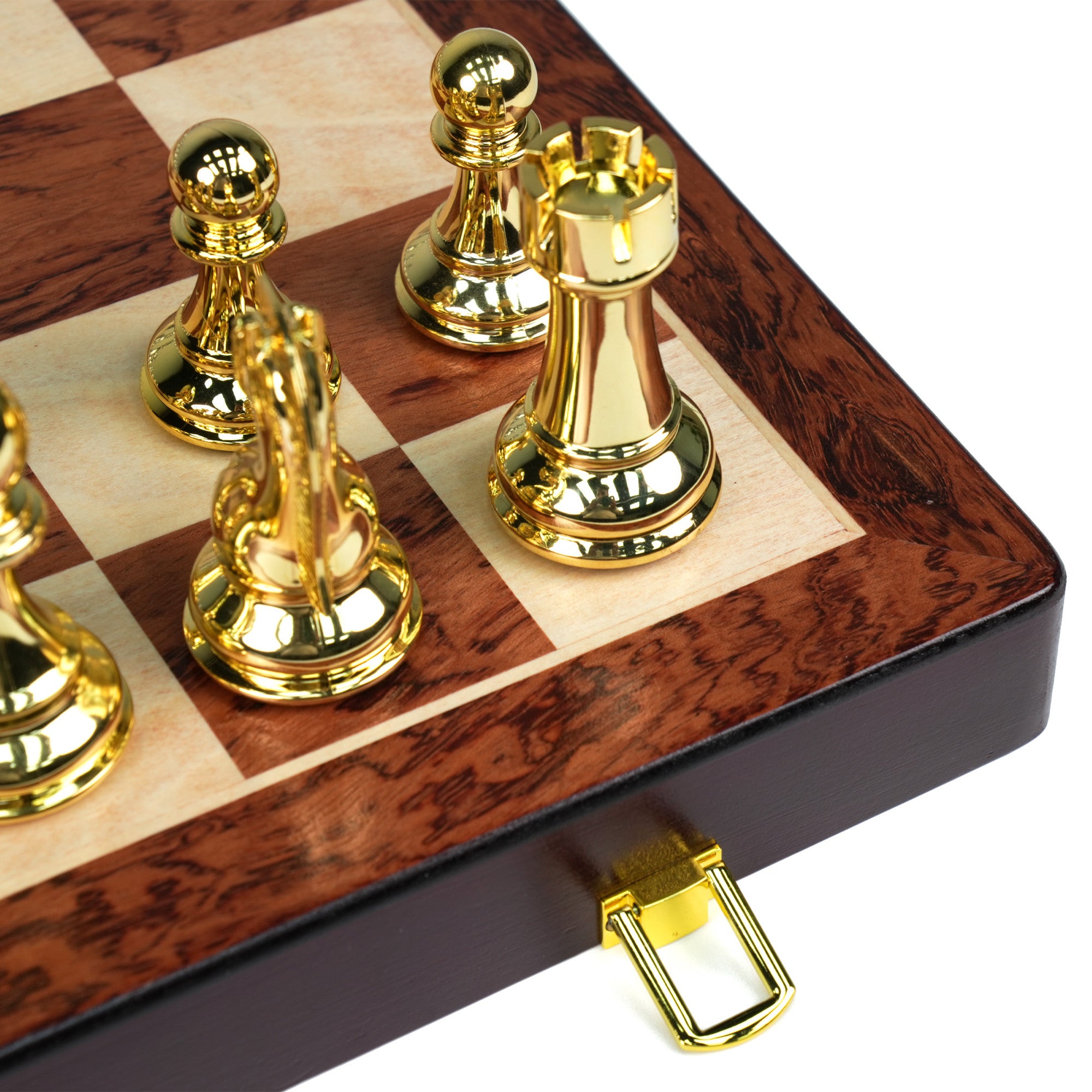 Harley Fitness Professional Wooden Chess Board with Metal Glossy Golden and Silver Chess Pieces Set - S5626D