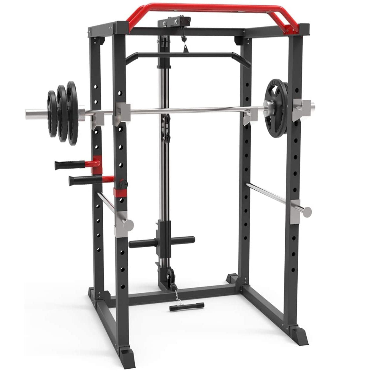 - Re-assuring safety function: There is a set of adjustable pulleys for safe and effective exercises, upgraded sleeves, equipped with a barbell protection bar, and solid steel supports that can be adjusted freely