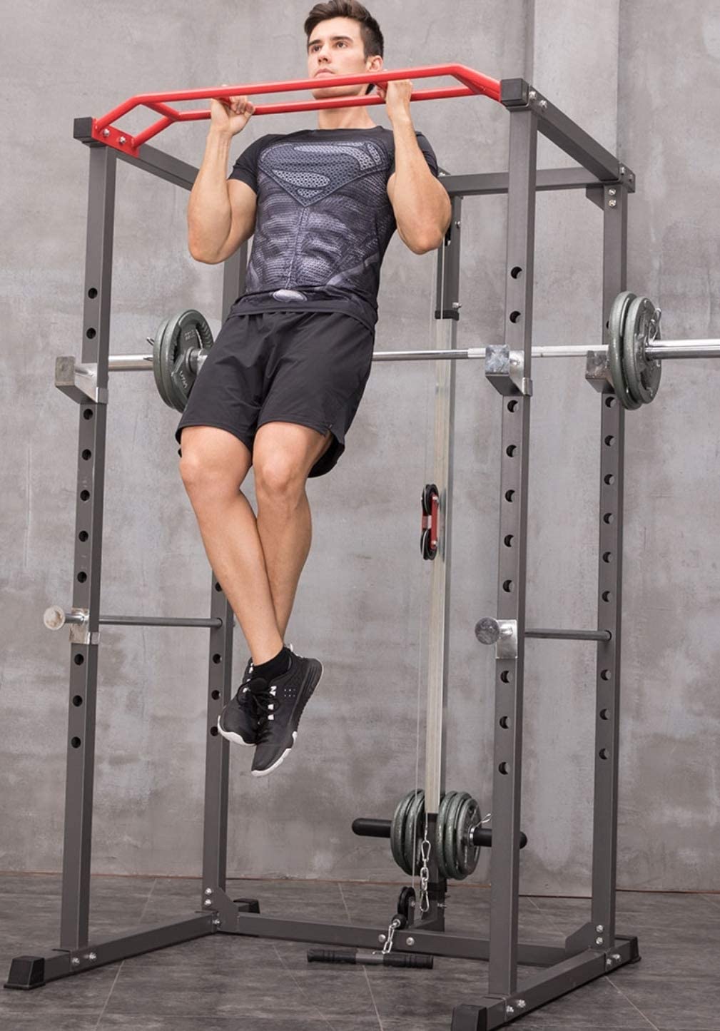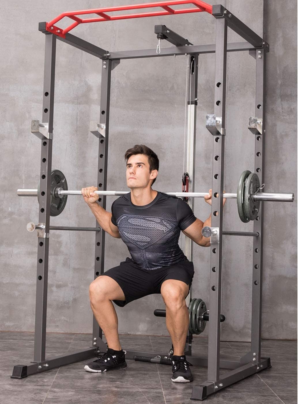 1441 Fitness Heavy Duty Squat Rack & Power Cage with Pull Up Bar and Lat Attachment J008 - Grey Color Frame