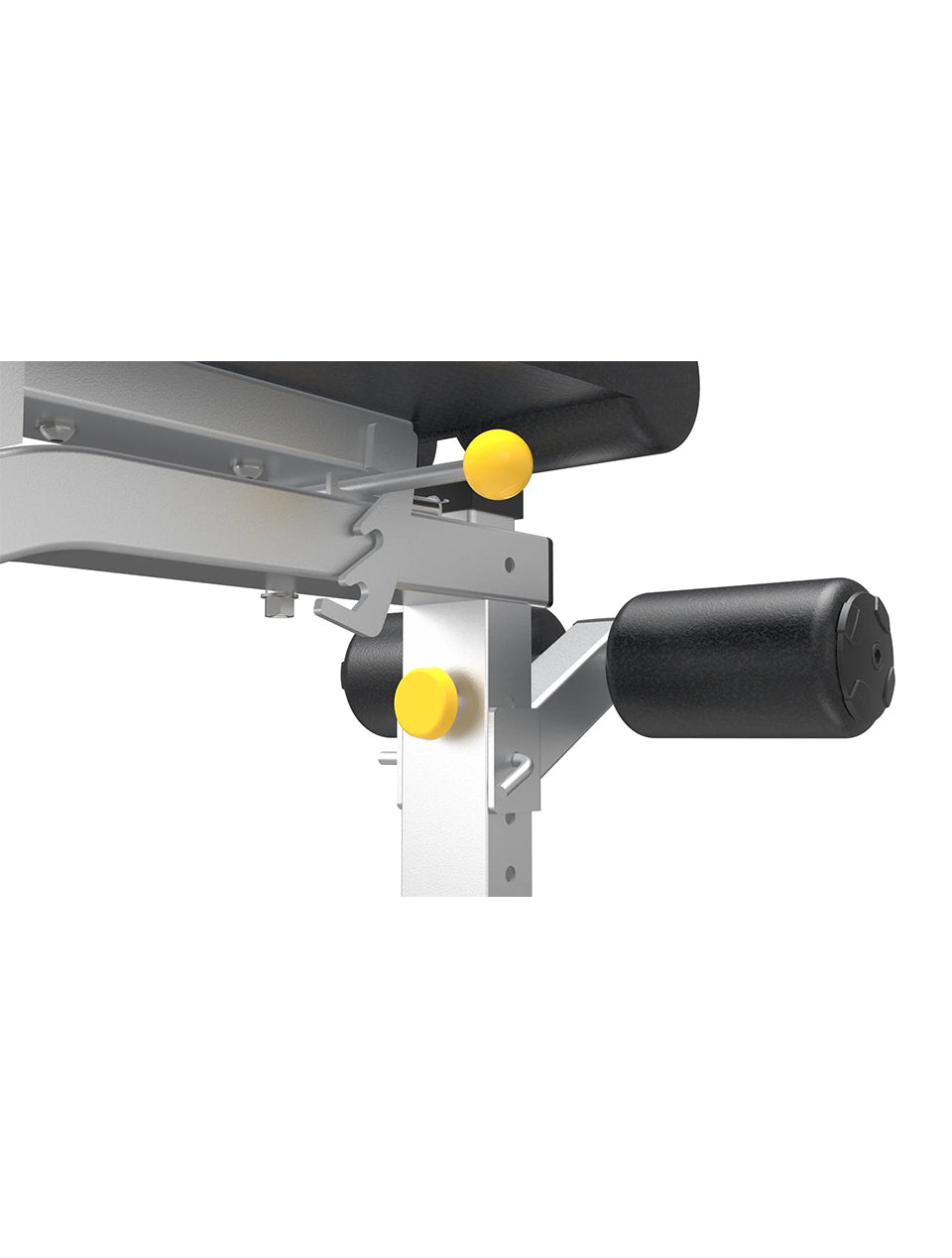 Without a doubt, the cornerstone of all strength training equipment is the Flat/Incline/Decline Bench and nothing comes close to the IFFID. The heavy-duty 2" x 3" steel frame can easily handle a load capacity of 600 Lbs. The back and seat pads lock into eight positions to align your body for perfect posture in all your exercises while the ultra-thick Dura Firm upholstery supports you comfortably through the most intense workouts. Lock your legs in the T-Bar Leg Hold Down featuring oversize rollers for extra comfort and stability while you perform upper and lower abdominal exercises as well as incline and decline.