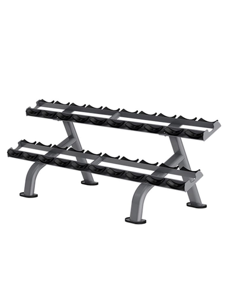 The Insight DR012 Dumbbell rack has polypropylene cradles that help in quiet and safe dumbbell placement. Any size of dumbbells can be placed as there are 10 pair of racks. There is angled tray height that prevents pain while removing and replacing dumbbells.