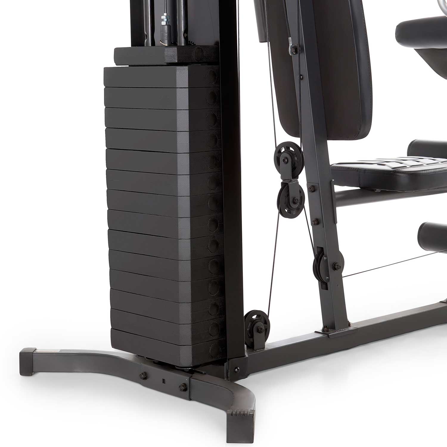 The MWM-1005 home training system exercises are safer than traditional free weight exercises because the weights are never suspended over your body; but rather, is stored behind a protective weight stack where they can't injure you.