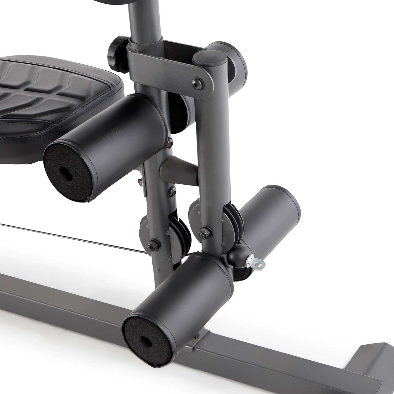 - Leg developer: Work your lower body muscles with the total leg developer. Foam roller pads allow for a comfortable workout.