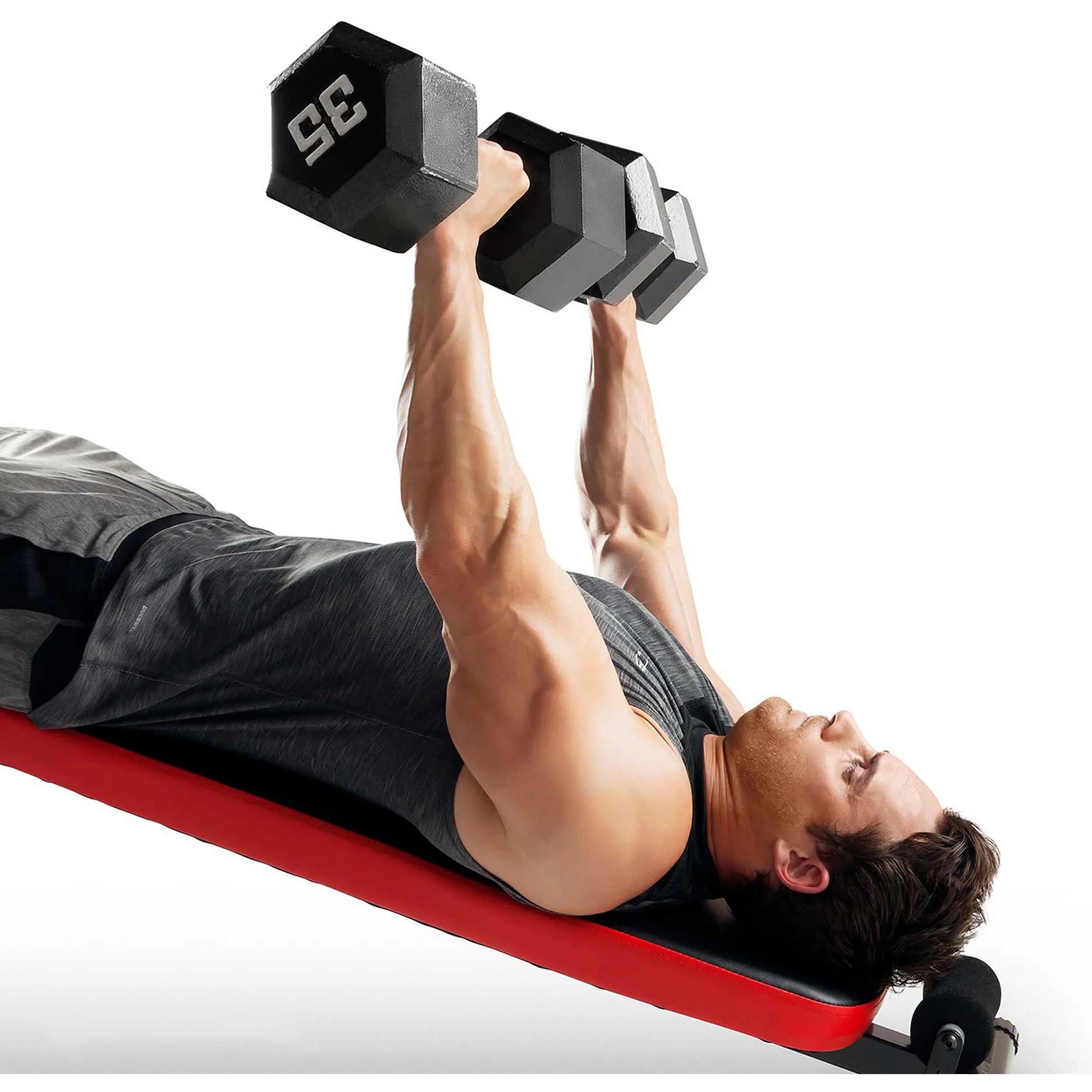 This equipment is built to last a long time because it has a powder-coated finish and a heavy-duty steel tube frame. Its long and wide backboard has high-density padded leather upholstery for optimum comfort, support, and balance. It also has 4 foam hold-down pads and a padded headrest to give you additional support and comfort when working out.