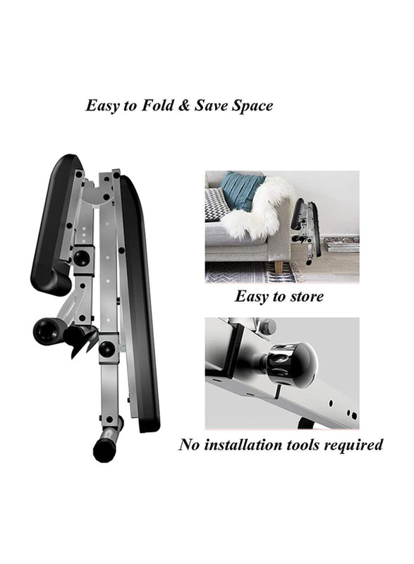 - Full body workout - this multi-purpose bench is suitable for a variety of exercise routines, and can be used for at-home fitness routines such as strength training, free weights, and crunching exercises. Easy to fold, only 13 inches thick when folded, it can be stored under the bed or in other free spaces.