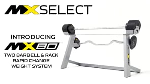 From deadlifts, presses, cleans and jerks the MX80 variable weight system combines a range of fixed bar options in one compact, heavy duty weight lifting package. Replacing 26 fixed weight bars or 1140 lbs (517 kg), this industry-first adjustable barbell and EZ curl rack is designed for compact spaces and allows for seamless weight transition between reps.