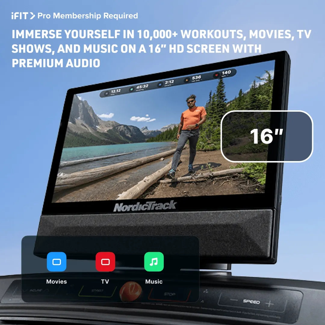 Entertainment meets fitness with access to streaming services on the stunning 16” HD touchscreen. Adjust the screen to your perfect angle, and immerse yourself in your favorite content while staying active and motivated.