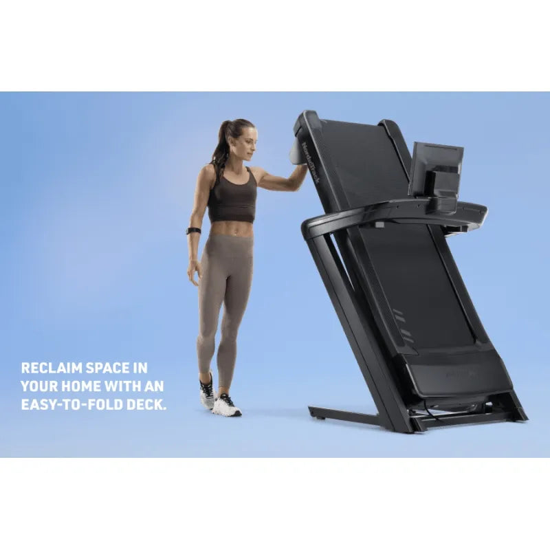 - Quickly fold and transport the treadmill with the SpaceSaver™ design