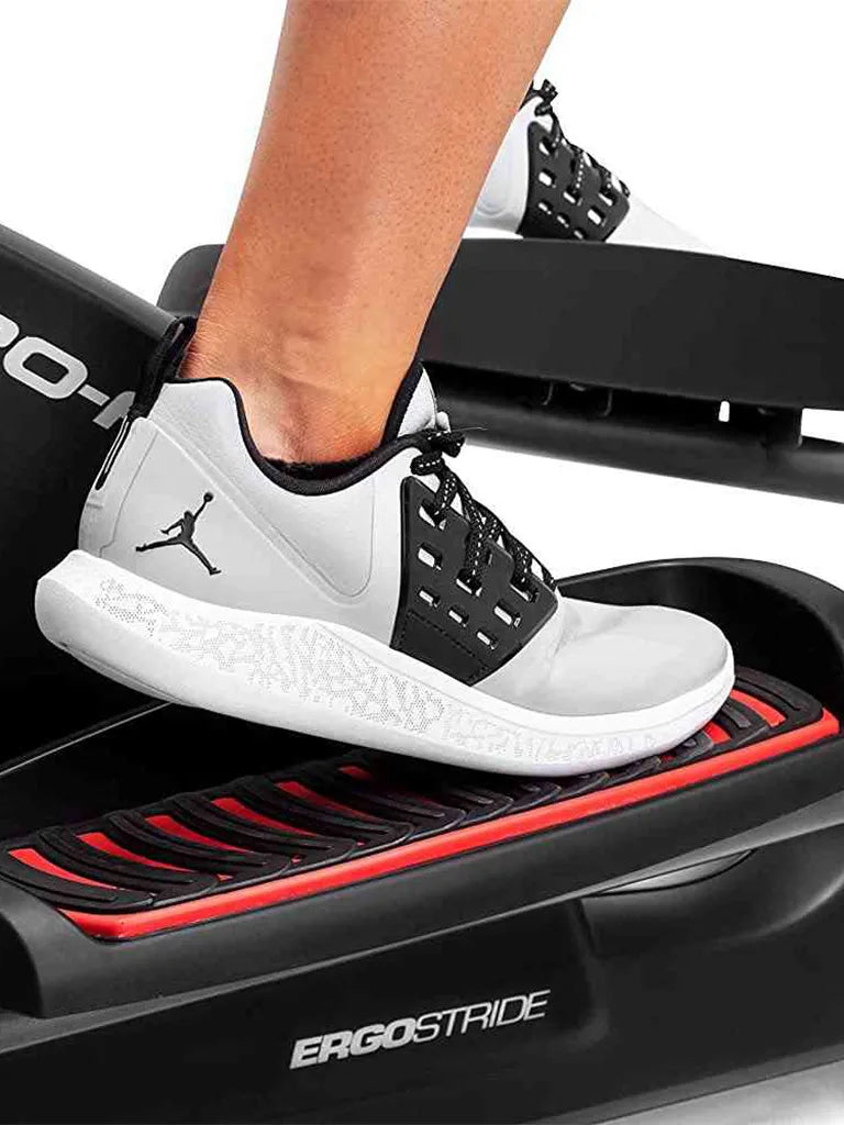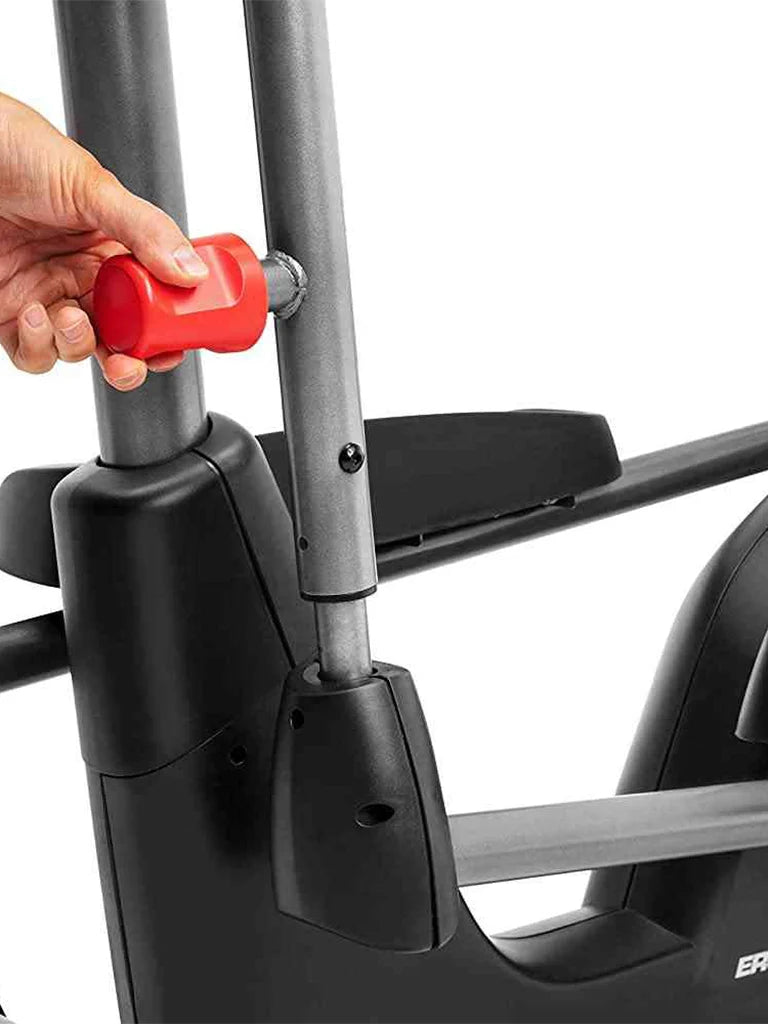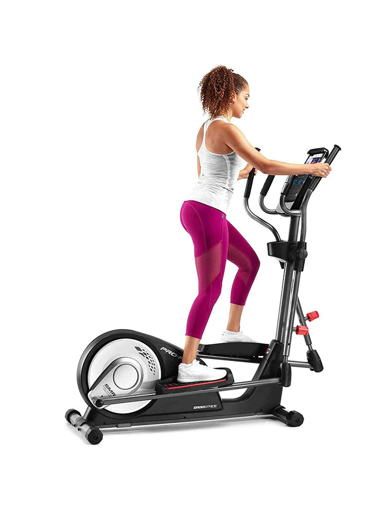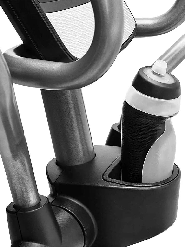 The 525 CSE + elliptical's backlit display provides all the data you require regarding your workout, including speed, time, resistance, distance, calories burned, and heart rate. The console has built-in speakers, so you can connect your device to the console sound system to listen to your workout playlist while staying motivated. The extra-large, cushioned pedals on the 525 CSE + elliptical are designed for comfort. The elliptical bike's wheel size affects how ample and fluid the movement is and how close it is to a natural stride because of the 41 cm step length. With the 525 CSE+, you can change the resistance to alter the intensity of your workouts. Every adjustment is quiet, smooth, and natural with SMRTM Silent Magnetic Resistance.