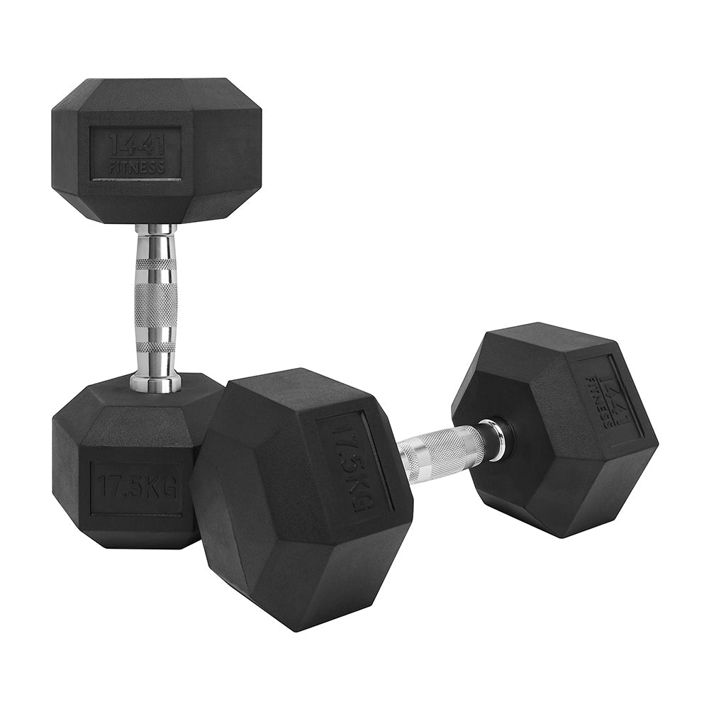 1441 Fitness Rubber Hex Dumbbells 2.5 - 50 kg Sold as Pairs