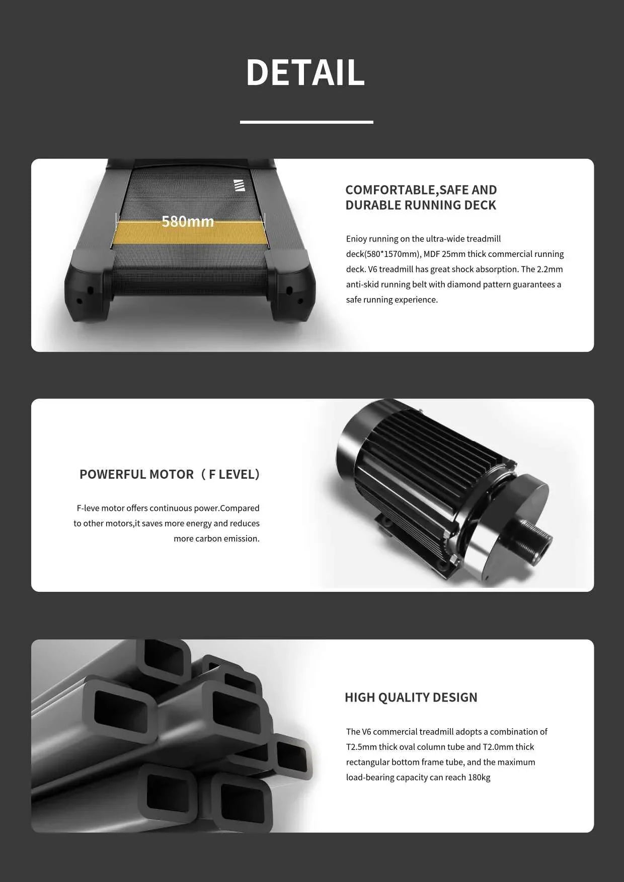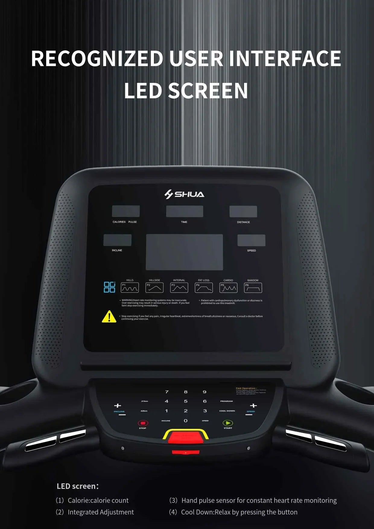 The Shua V6 Treadmill is a high end treadmill, designed for heavy duty usage, suitable for small to large commercial gyms.