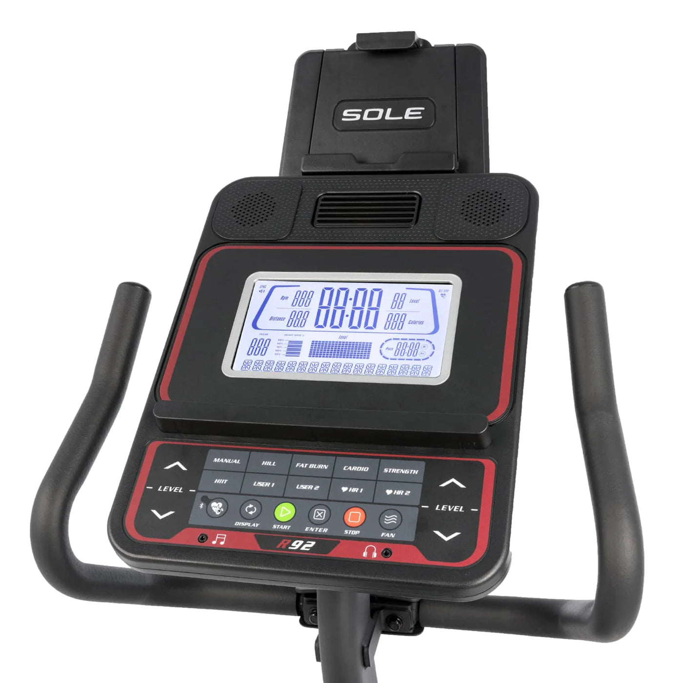- *New for this year, the R92 now includes an Integrated tablet holder. This allows you to use your smart devices to watch shows or follow your workout routines, also included is a USB port to charge your smart devices while working out and Bluetooth Audio Speakers so you can listen to your music from your smart devices through the speakers on the console.