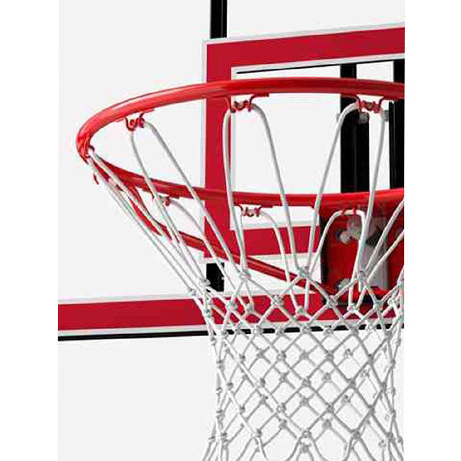 The Spalding 44-inch shatter-proof polycarbonate backboard and steel frame have good rebound properties and are made for serious play. The 44 Inch Polycarbonate Combo will help you step up your game. This Backboard and Rim setup is as durable as they come, withstanding the rain, the cold, and endless rounds of banked jump shots. You have the ability to sink it with everything you've got thanks to the sturdy Slam Jam® Breakaway Rim. This steel rim is weatherproofed with a powder coat. constructed for outdoor sports. For a smooth break at the front, it is spring-loaded.