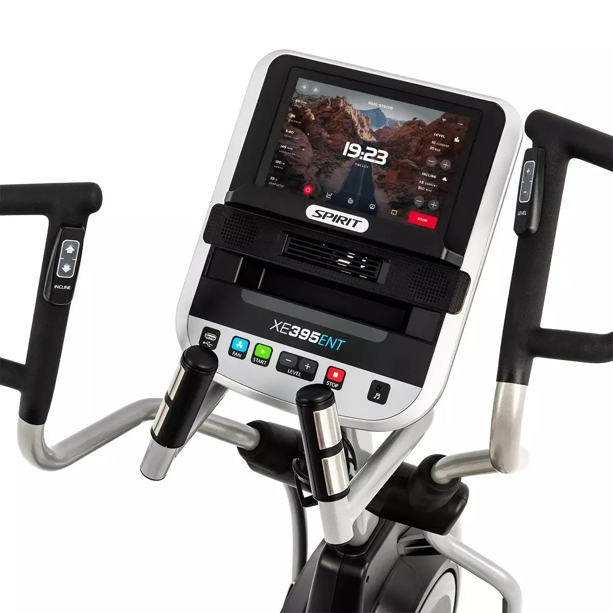 Designed for those seeking premium features, the Spirit Fitness XE395 ENT Elliptical is ideal for elevating your training with enhanced functionality, entertainment, and comfort. Perfect for both beginners and seasoned athletes, this cross trainer offers a complete, immersive fitness experience.