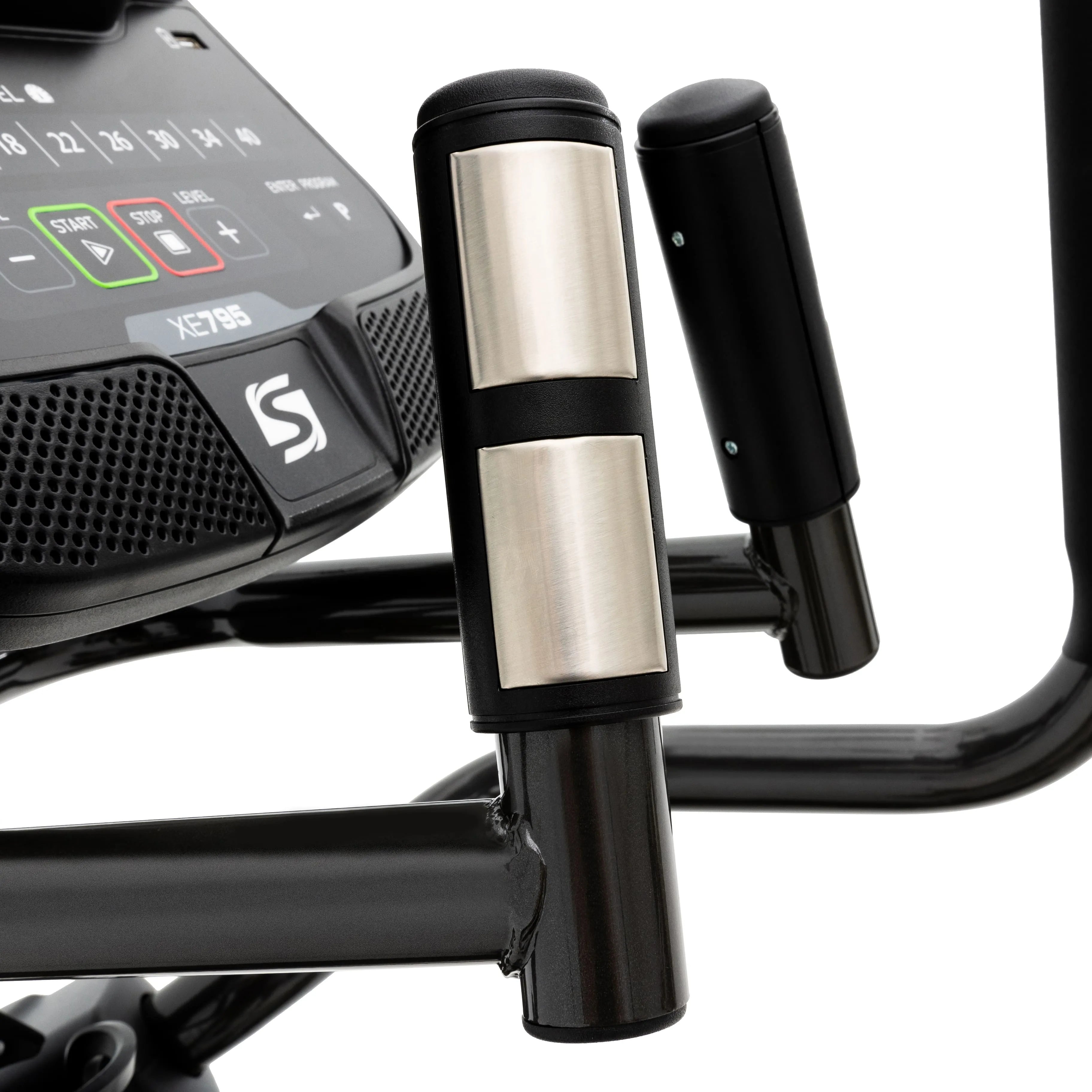 To enhance user comfort, the XE795 includes oversized, cushioned pedals with a slight 2-degree inversion to reduce joint stress, allowing for a more ergonomic workout. The dual aluminum track system offers enhanced stability, ensuring a consistent stride with each step. Additionally, the elliptical is equipped with handlebar-mounted resistance controls, allowing for seamless adjustments during your workout without interrupting your flow. Built-in transport wheels make it easy to move the elliptical when needed, providing added convenience for home use. With a range of pre-programmed workouts and resistance levels, the Spirit Fitness XE795 offers a versatile and challenging fitness solution that adapts to your personal goals and preferences, delivering a high-quality cardio experience.